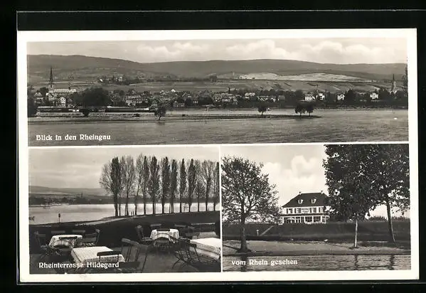 AK Heidesheim-Heidenfahrt, Gasthaus Rheinterrasse Hildegard mit Rheinblick