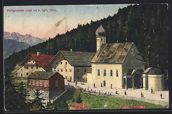 AK Heiligwasser b. Igls, Ortsansicht mit Kirche