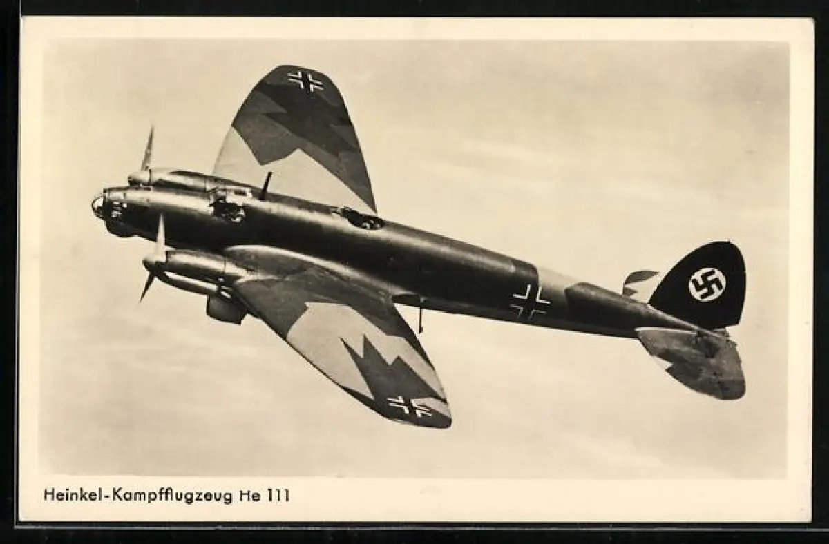 AK Heinkel-Kampfflugzeug He 111 mit Tarnbemalung,