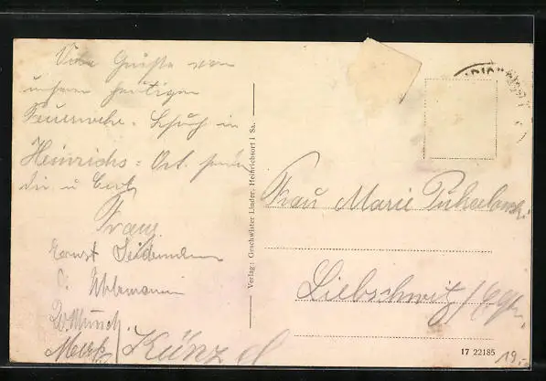 alte Ansichtskarte, gelaufen, Briefmarke entfernt, rückseitig Klebe- und Papierreste, guter Zustand