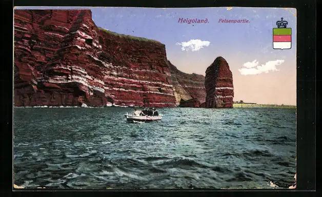 AK Helgoland, Felsenpartie mit Ruderboot, Wappen