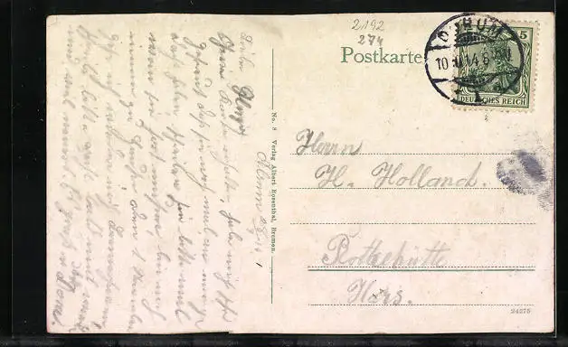 alte Ansichtskarte, gelaufen 1914, guter Zustand