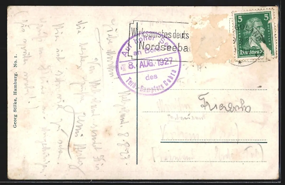 alte Ansichtskarte, gelaufen, Briefmarke entfernt, guter Zustand