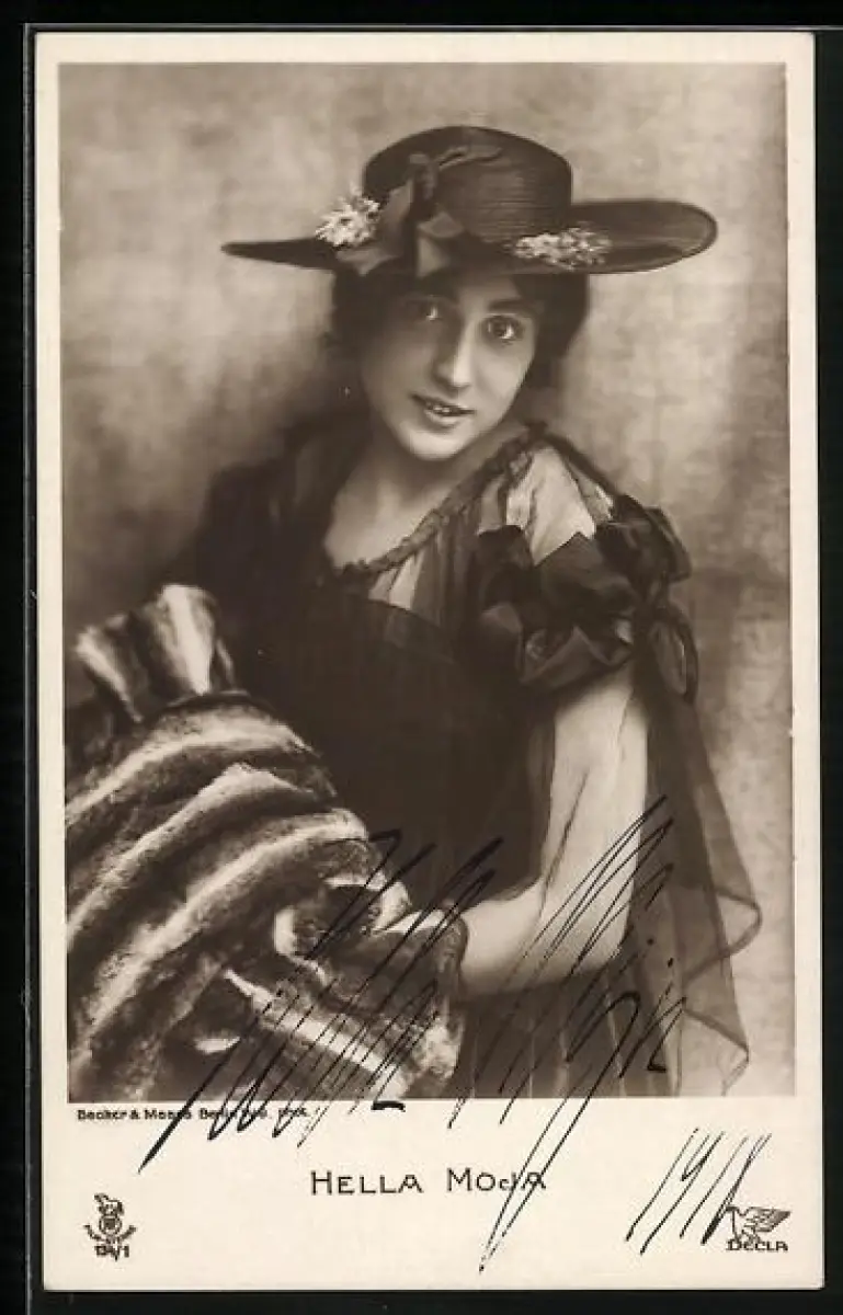 AK Hella Moda mit Pelzmantel und Hut, Autograph, 1918