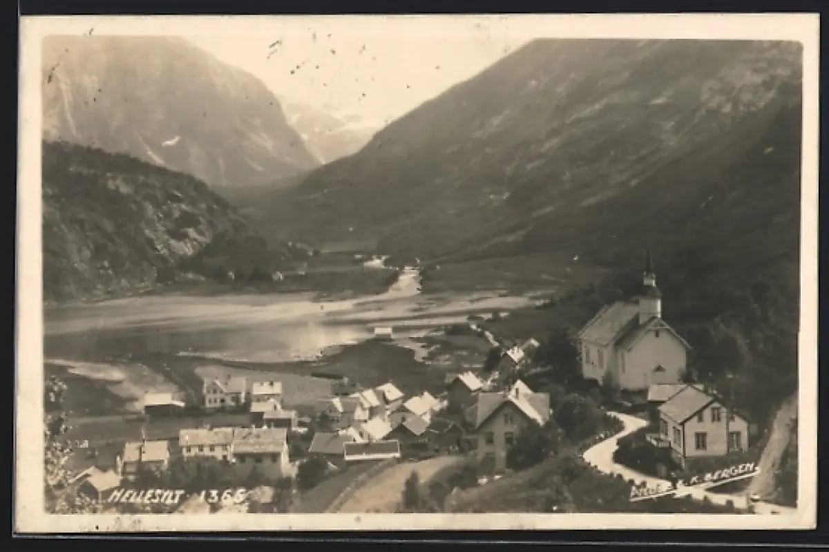 AK Hellesylt, Ortsansicht aus der Vogelschau