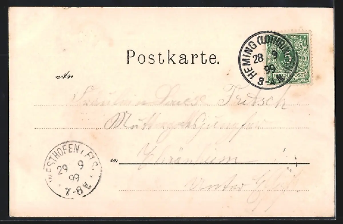 alte Ansichtskarte, gelaufen 1899, guter Zustand
