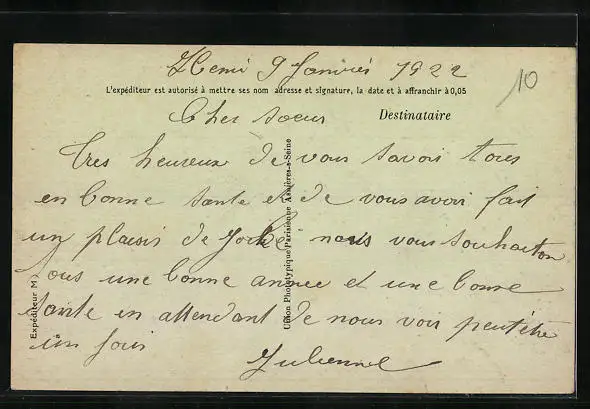 ungelaufen, Rückseite beschrieben 1922, guter Zustand