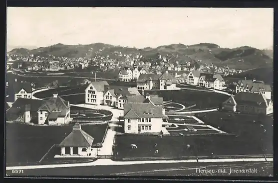 AK Herisau, Strassenpartie mit Irrenanstalt und Teilansicht