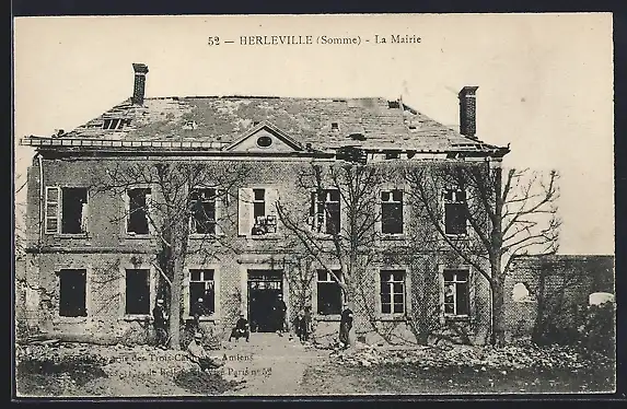 AK Herleville, La Mairie en ruines après le conflit