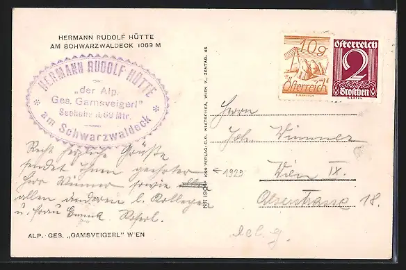AK Hermann Rudolf-Hütte, Berghütte der Alp. Ges. Gamsvigerl am Schwarzwaldeck