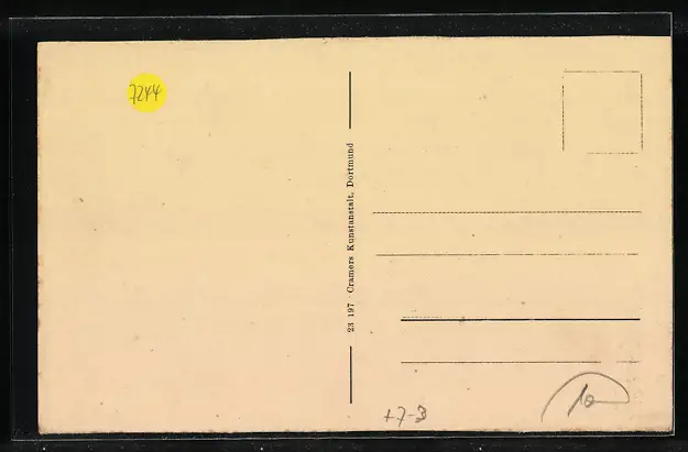 Personenbezogene Daten auf der Rückseite der Karte wurden durch blauen Textmarker unkenntlich gemacht. Die blauen Stellen sind auf die Vorderseite durchgeweicht und wirken sich negativ auf das Postkartenfoto aus