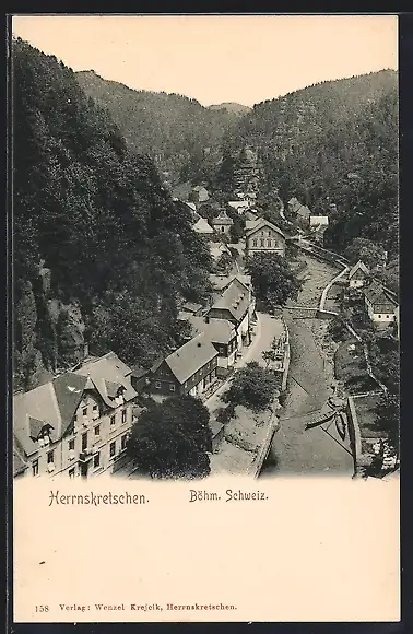 AK Herrnskretschen /Böhm. Schweiz, Teilansicht mit Strassenpartie