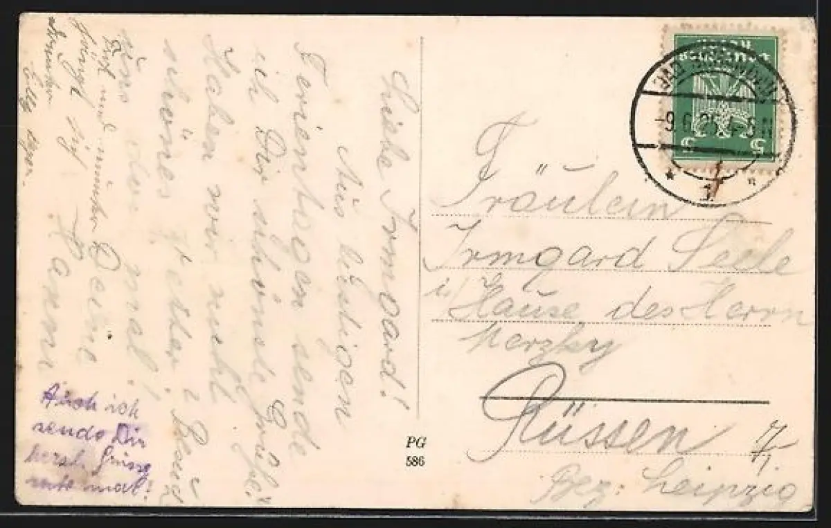 alte Ansichtskarte, gelaufen 1925, Eckknicke li. oben u. re. unten, Stempelspur, guter Zustand