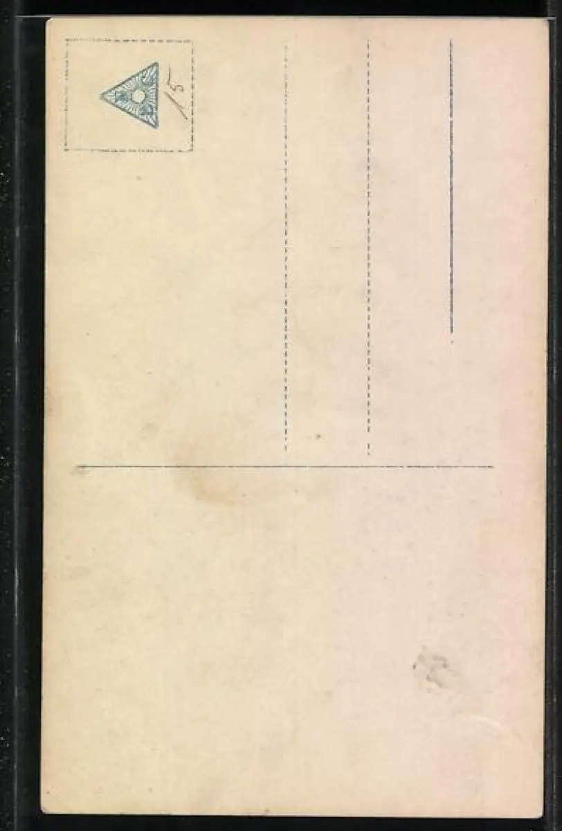 Personenbezogene Daten auf der Rückseite der Karte wurden durch blauen Textmarker unkenntlich gemacht. Die blauen Stellen sind auf die Vorderseite durchgeweicht und wirken sich negativ auf das Postkartenfoto aus