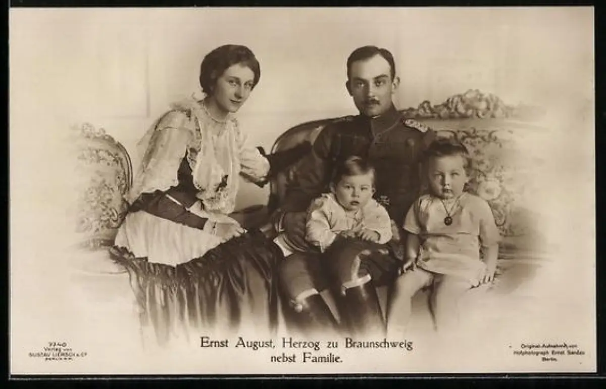 AK Herzog Ernst August von Braunschweig nebst Familie, das Fürstenpaar mit seinen Kindern