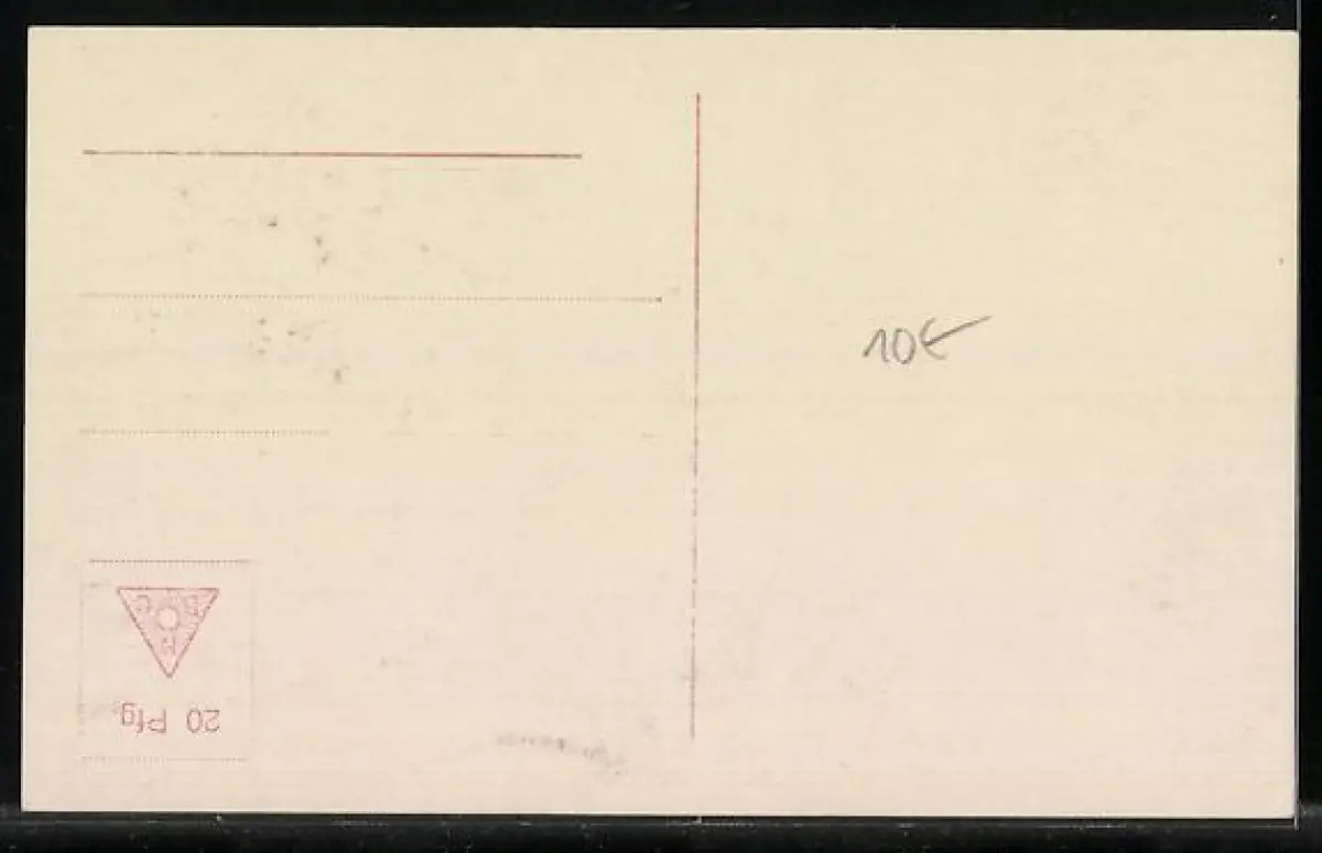 Personenbezogene Daten auf der Rückseite der Karte wurden durch blauen Textmarker unkenntlich gemacht. Die blauen Stellen sind auf die Vorderseite durchgeweicht und wirken sich negativ auf das Postkartenfoto aus