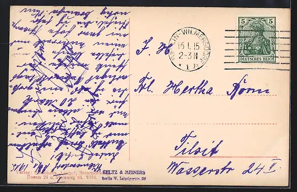 alte Ansichtskarte, gelaufen 1915, Stempelspur, Eckknick re. oben, guter Zustand