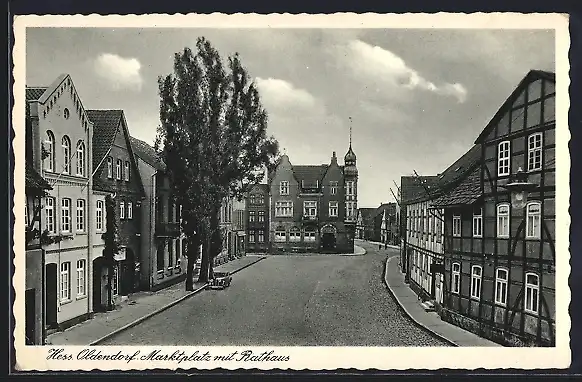 AK Hess. Oldendorf, Marktplatz mit Rathaus