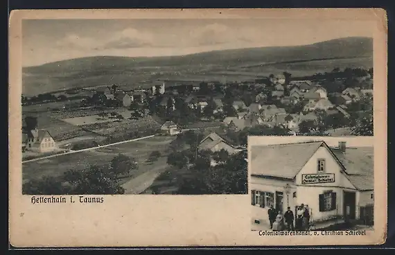 AK Hettenhain i. Taunus, Colonialwarenhandlung von Christian Schiebel, Totalansicht