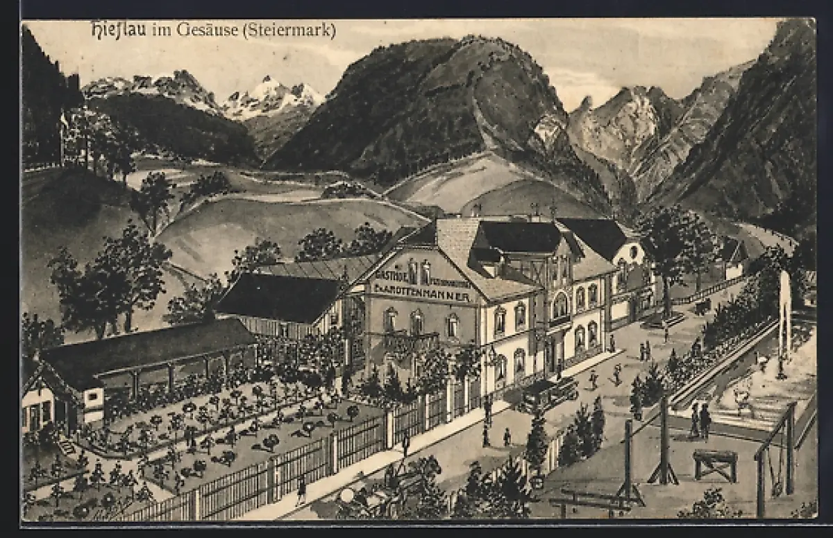 AK Hieflau im Gesäuse, Gasthof u. Fleischhauerei F. Rottenmanner