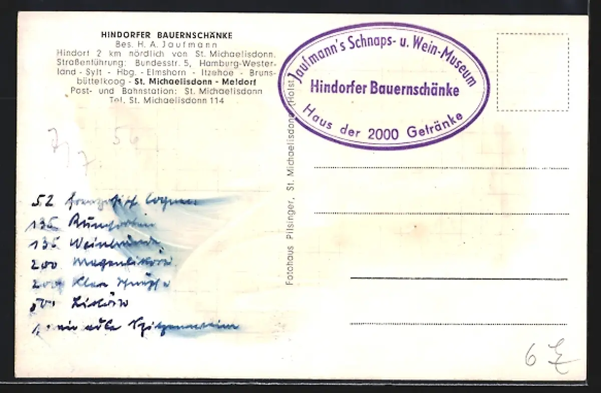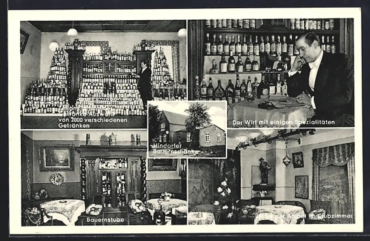 AK Hindorf, Ansichten der Bauernschänke, Getränke-Auswahl, Bauernstube, der Wirt