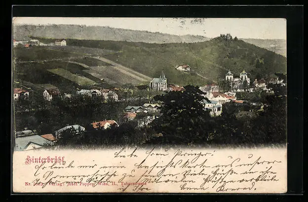AK Hinterbrühl, Ortsansicht mit Feldern