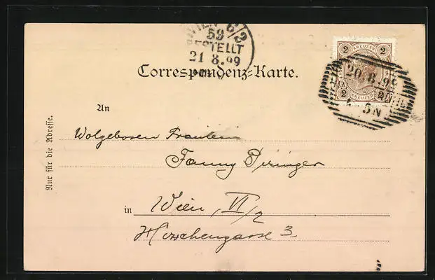 alte Ansichtskarte, gelaufen 1899, guter Zustand