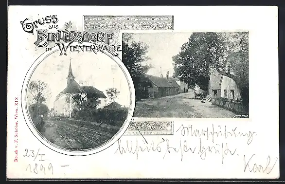 AK Hintersdorf im Wienerwalde, Kirche, Ortspartie