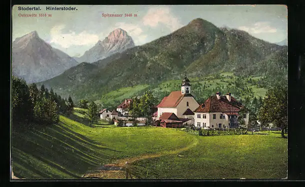 AK Hinterstoder /Stodertal, Ortspartie gegen Spitzmauer