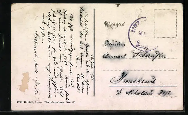 alte Ansichtskarte, gelaufen 1921, Eckknick oben re., Briefmarke entfernt, rückseitig Oberflächenschaden