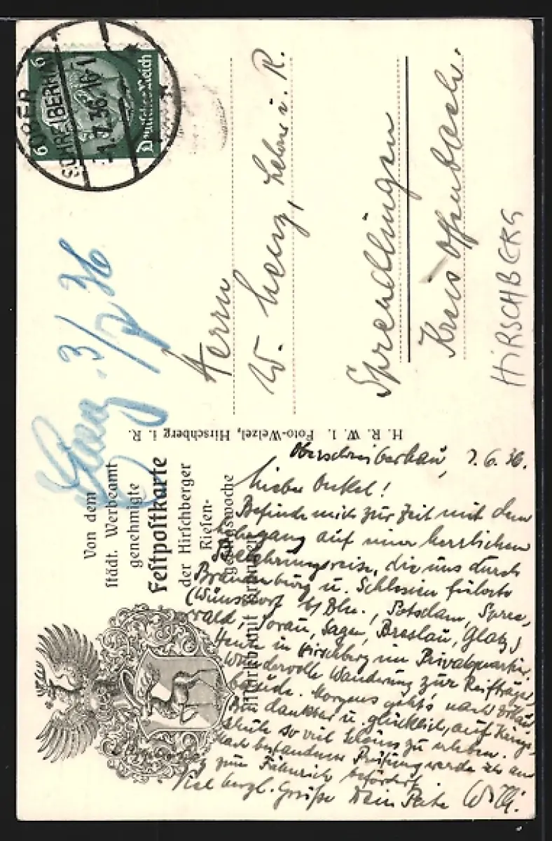 alte Ansichtskarte, gelaufen 1936, guter Zustand