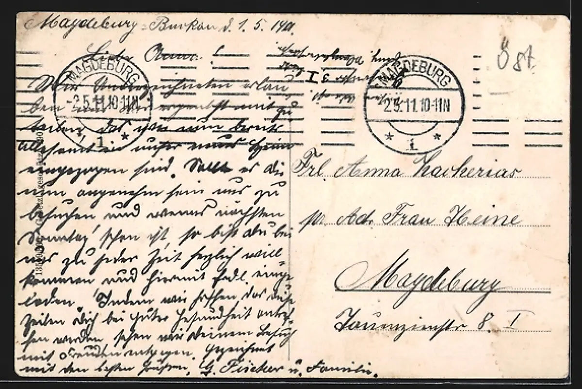 gelaufen 1911, Bugspur diag. li. oben b. unten Mitte, Eckknick oben re., guter Zustand