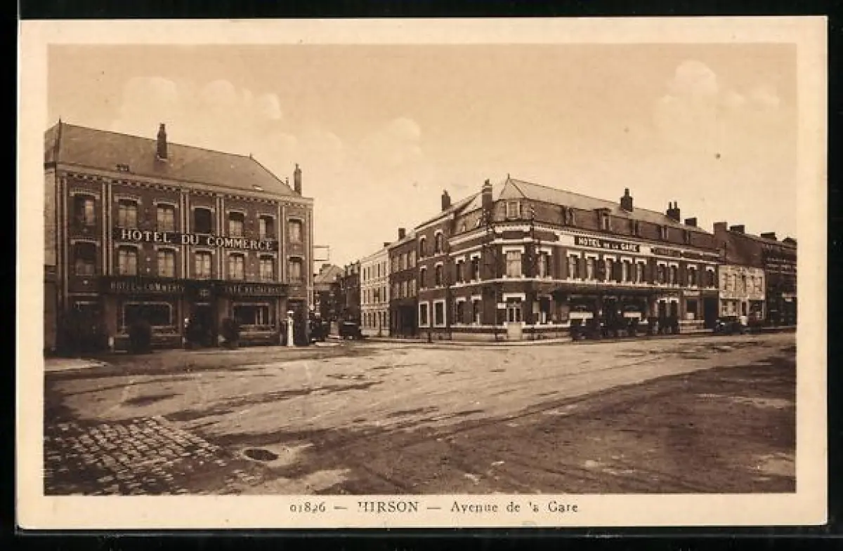 AK Hirson, Avenue de la Gare avec Hôtels du Commerce et de la Gare
