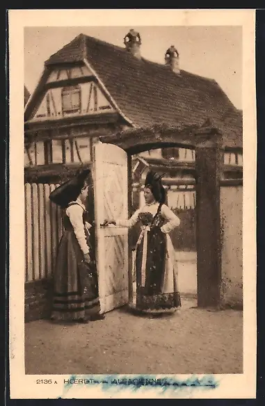 AK Hoerdt, Alsaciennes, zwei Elsässerinnen in Tracht