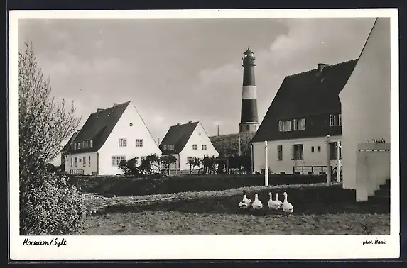 AK Hörnum, Ortspartie am Leuchtturm, Gänse