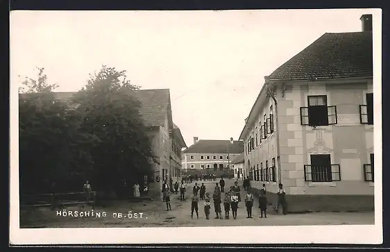 AK Hörsching, Strassenpartie mit Gasthaus