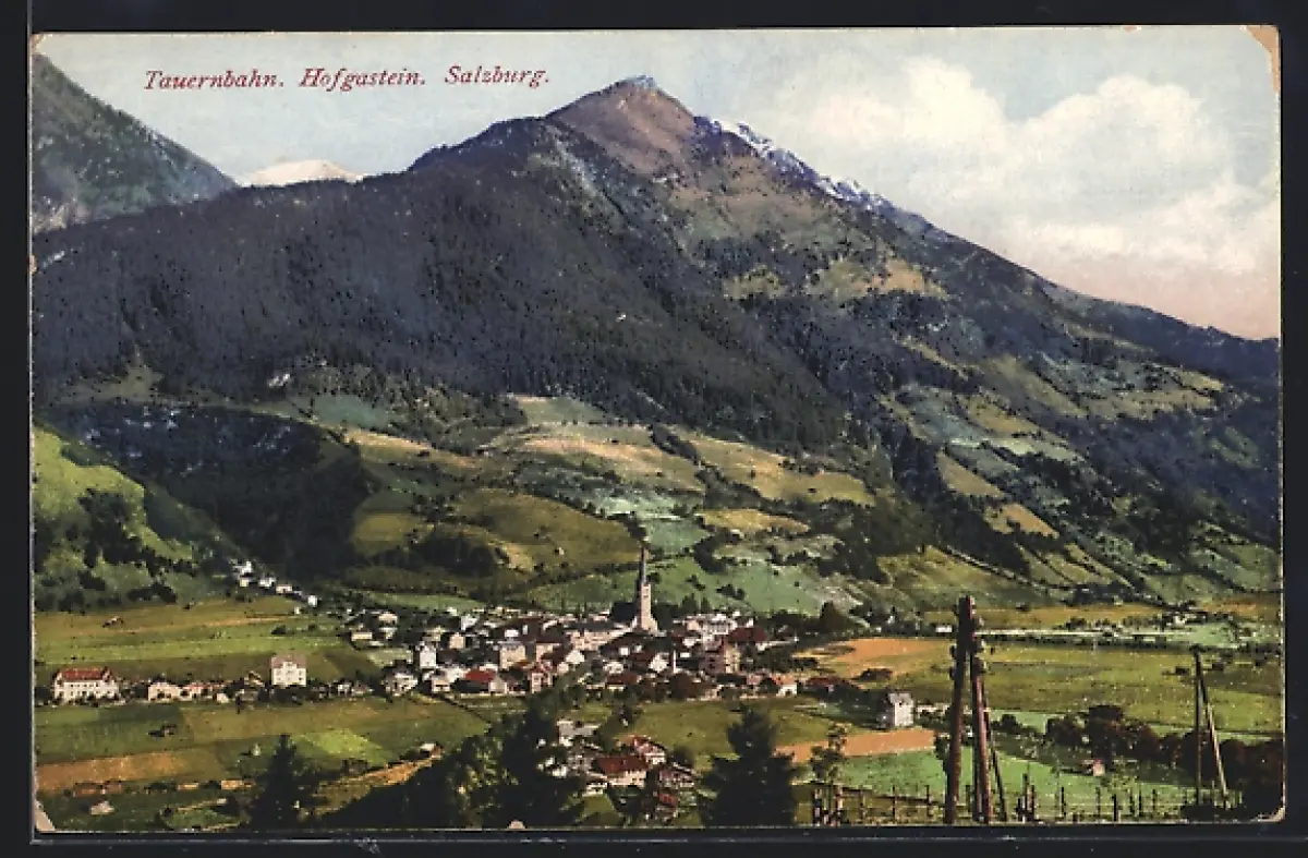 AK Hofgastein /Tauernbahn, Ortsansicht gegen den Berg