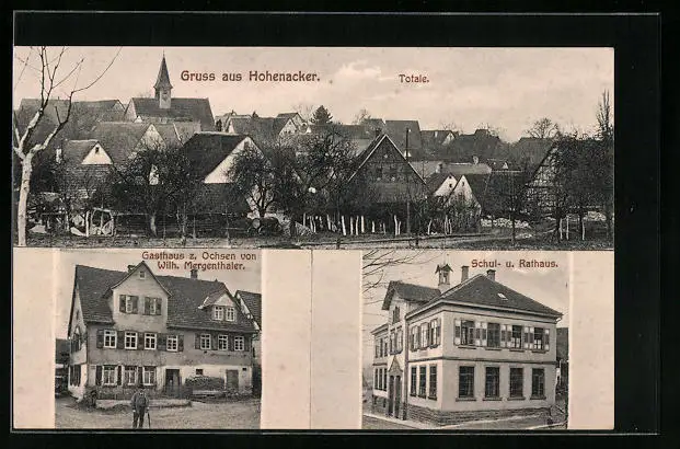AK Hohenacker, Gasthaus z. Ochsen, Schul- u. Rathaus, Totalansicht