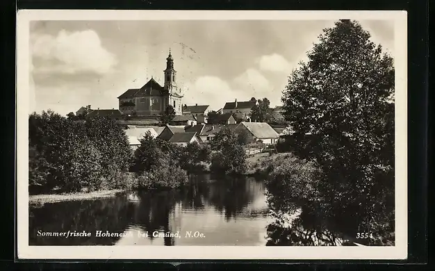 AK Hoheneich bei Gmünd, Uferpartie mit Kirche