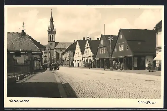 AK Hohenelbe / Vrchlabi, Strassenpartie mit Gebäudeansicht