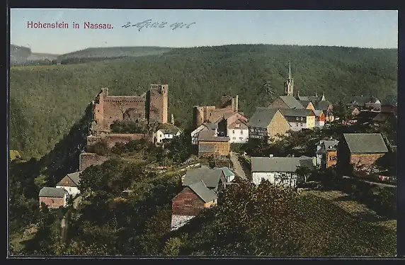 AK Hohenstein in Nassau, Teilansicht mit Burg