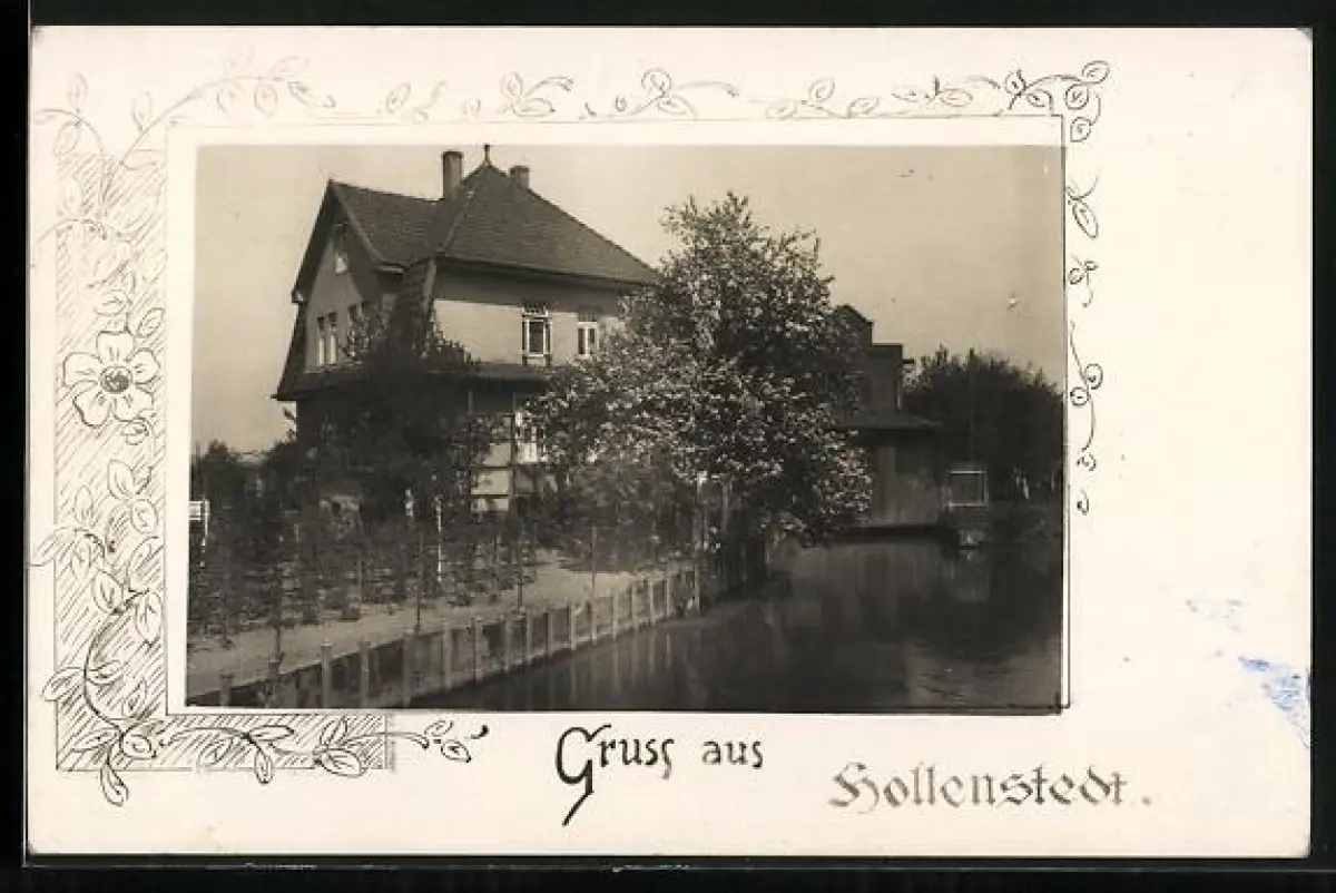 AK Hollenstedt / Leinetal, Uferpartie mit Wohnhaus, Passepartout