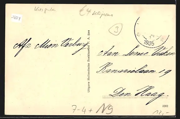 alte Ansichtskarte, gelaufen 1935, Briefmarke entfernt, rückseitig Oberflächenschaden, guter Zustand