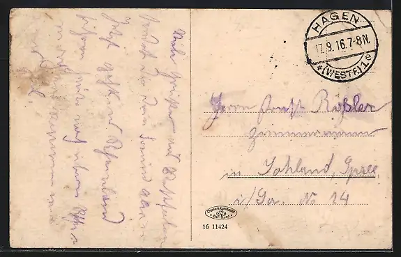 alte Ansichtskarte, gelaufen 1916, Eckknicke li., guter Zustand