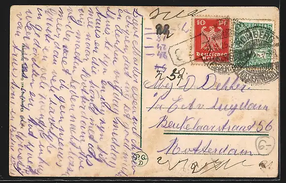 gelaufen 1925, Eckknick li. unten, Abriebspur re. unten, guter Zustand