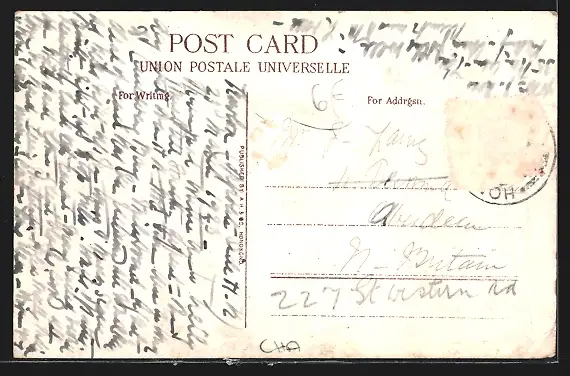 alte Ansichtskarte, gelaufen, Briefmarke entfernt, rückseitig Oberflächenschaden, Eckknick li. unten, guter Zustand