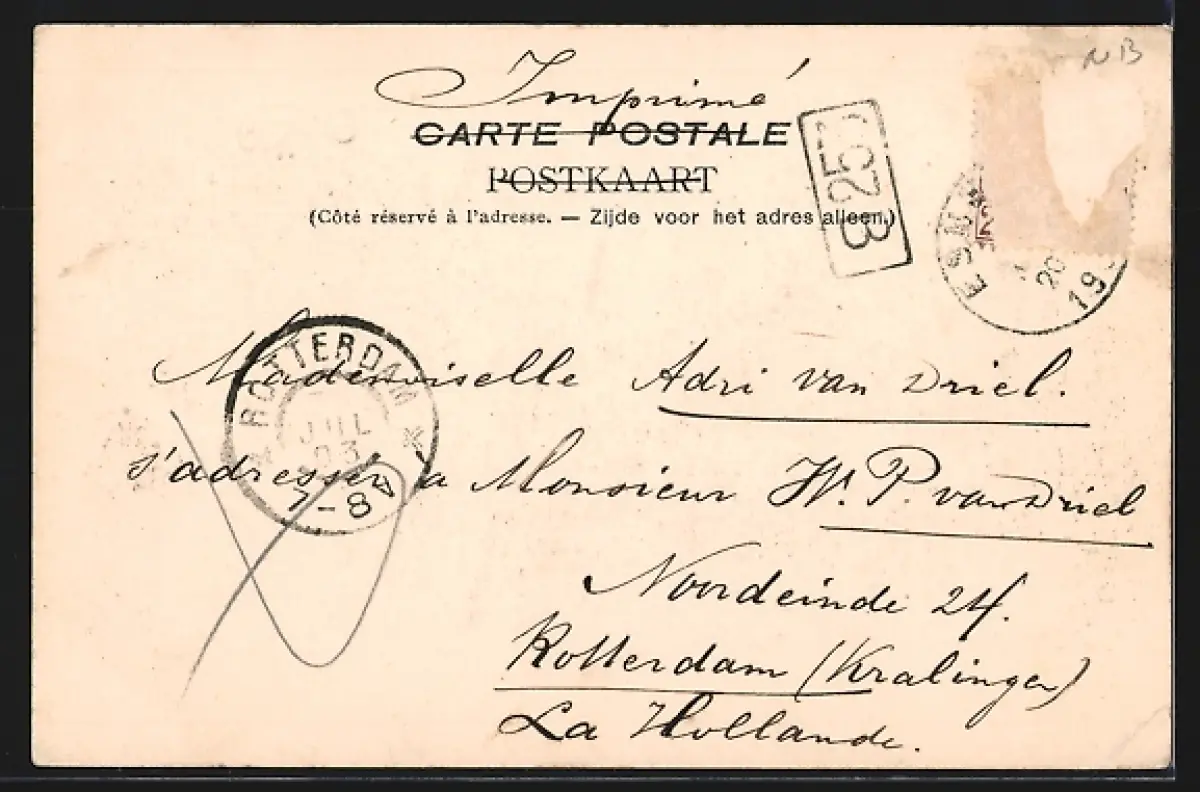alte Ansichtskarte, gelaufen 1903, Briefmarke entfernt, rückseitig Oberflächenschaden, guter Zustand