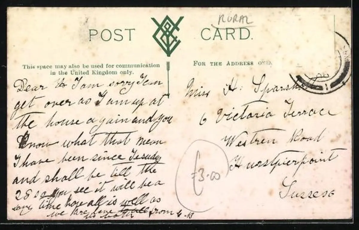 alte Ansichtskarte, gelaufen, Briefmarke entfernt, rückseitig Klebe- und Papierreste, rückseitig Oberflächenschaden, Eckknick li. unten