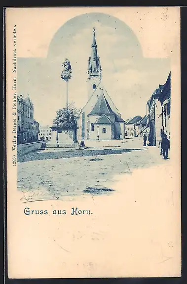 AK Horn, Marktplatz mit Denkmal und Kirche