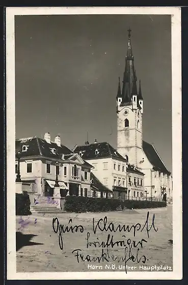 AK Horn /N. Ö., Untrer Hauptplatz mit Kirche
